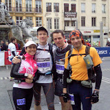 Je m’empresse de suivre ses bons conseils histoire de finir comme il se doit la balade. J’ai l’impression que mes mollets vont éclater. Tant pis, j’accélère, mais juste un peu, pour la forme, de toute façon je n’ai pas de Tazounet à rattraper cette année. Je déboule sur la place Louis Pradel, il y a quelques marches à dévaler, attention de ne pas se gaufrer, une route à traverser, je pénètre dans l’enceinte de l’Hôtel de Ville et je traverse la cour d’honneur puis l’atrium pour émerger en haut de cet ultime escalier qui me sépare de l’arrivée. La place des Terreaux s’offre à moi, je descends tranquillement les quelques marches et je franchis l’arrivée en 4h27. Mon transat … Où est mon transat ?